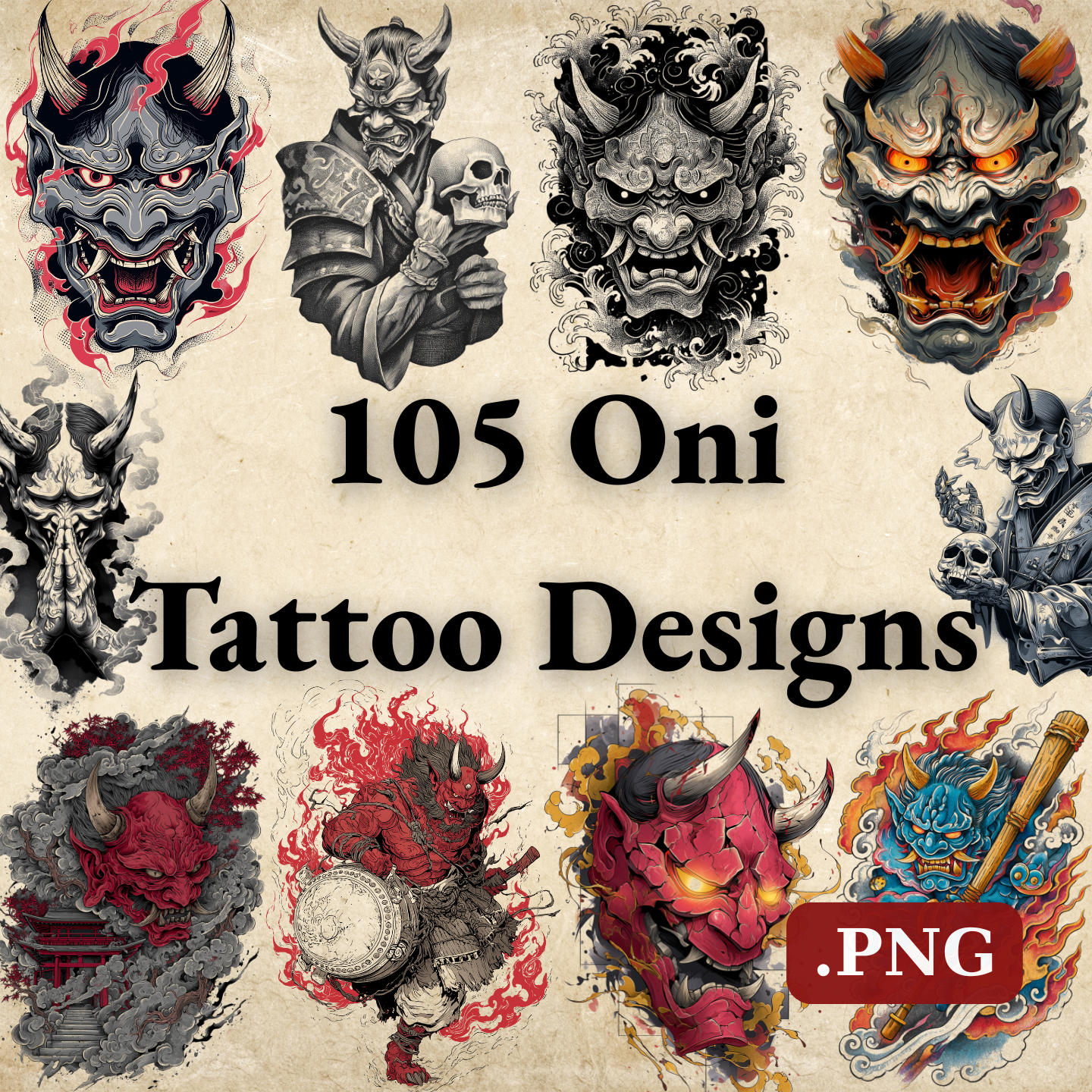 Dive into a bold collection of 105 high-quality Oni tattoo design files