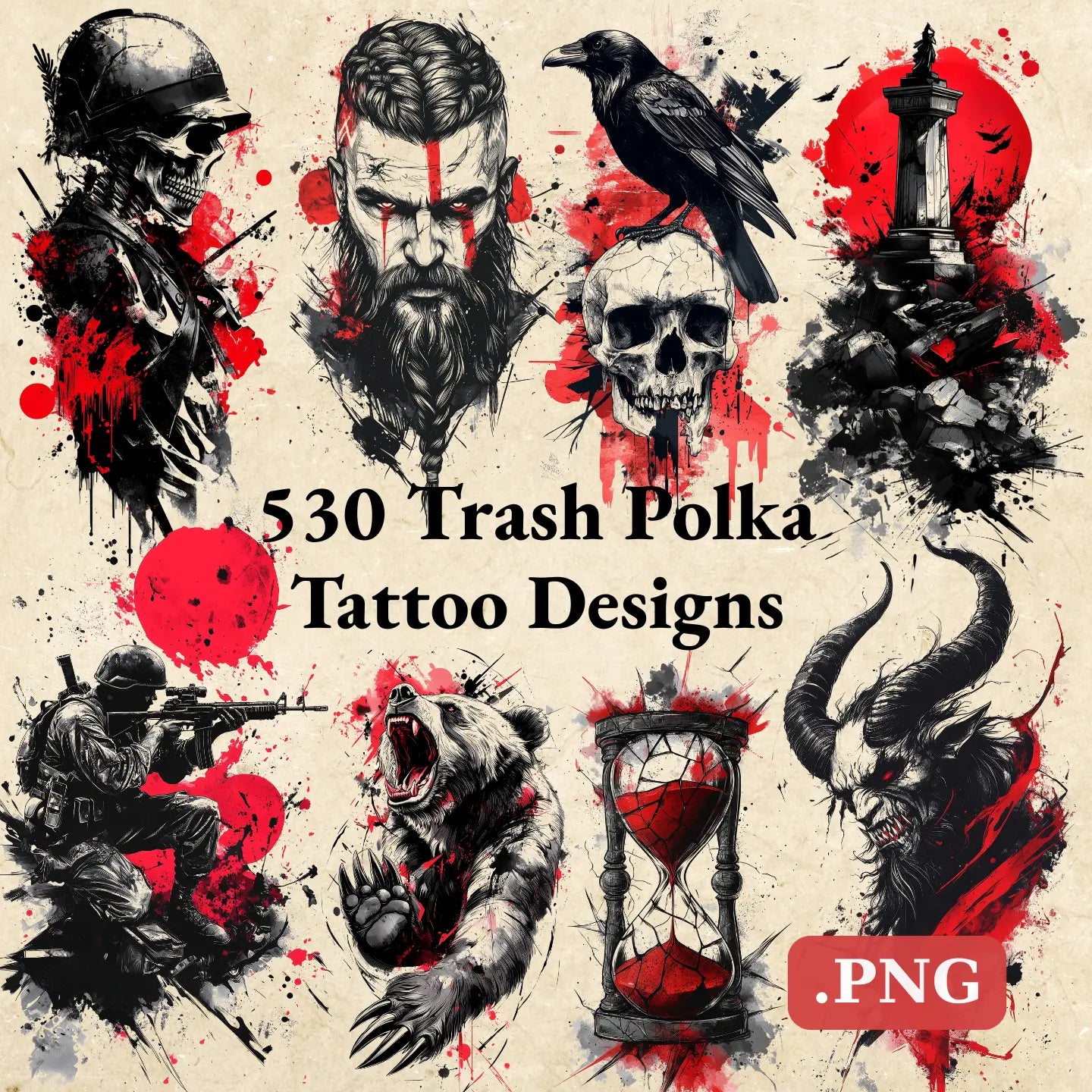 Unleash the raw, rebellious energy of Trash Polka with this collection of 530 high-resolution PNG tattoo designs. Featuring bold black ink, abstract shapes, red splashes, and expressive typography, this bundle is perfect for artists seeking an edgy, high-impact aesthetic.